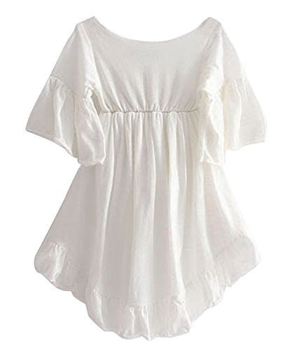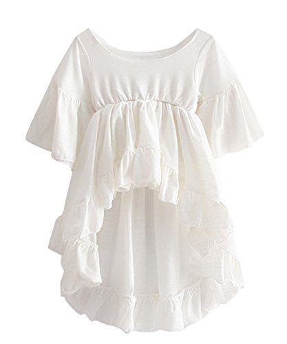 Girl's Casual O Neck Falbala Short Sleeve High Low Knit Cotton T Shirt