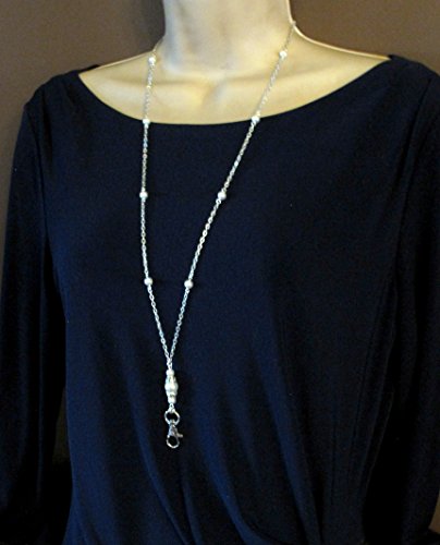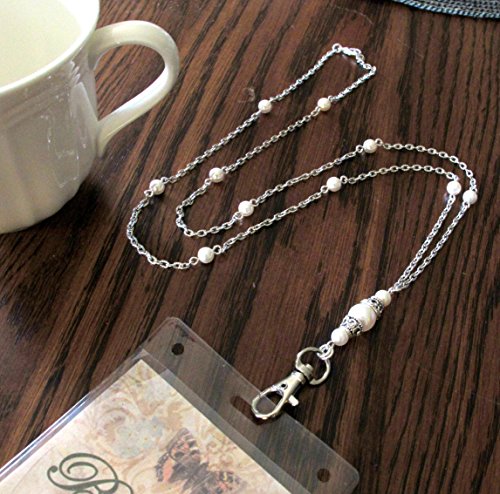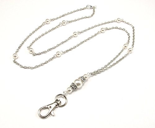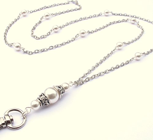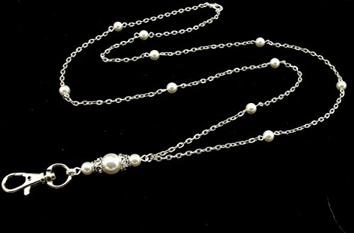 -. Brand : By Brenda Elaine Jewelry -. Color : white -. Department : womens -. IsAdultProduct : 0 -. ProductGroup : Guild Product -. ProductTypeName : GUILD_JEWELRY -. Title : Women's Fashion ID Badge or Key Lanyard Necklace with White Swarovski Pearls and Silver Textured Chain