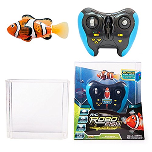 - Feature : * 3 Point Infrared Remote Control / * Life Like Robo Fish / * Fish Tank Included / * Extra Fin Tail Spints 360 degrees