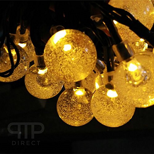 SOLAR POWER GLOBE STRING LIGHTS (30 LED) FOR INDOOR/OUTDOOR USE - BEST DECORATIVE OUTSIDE LIGHTING FOR PATIO, HOME, BISTRO, BACKYARD OR GARDEN - CLEAR FAIRY BUBBLE BULBS POWERED BY SUN (WARM WHITE)