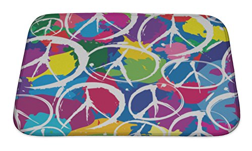 Gear New No Slip Microfiber Memory Foam Pattern with Multicolor Symbols of Peace Bath Rug Mat, 24" X 17"