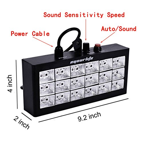RGB 60W 18PCS Strobe Light Sound Active Audio LEDs for Pub Club DJ Show Disco KTV Xmas Party Wedding Features:1. 18pcs RGB strobe LED flashing light and has dazzling lighting effects Environment-friendly, no harmful elements such as mercury and lead, it can be recycled and reduced without EMI High efficiency, low heat. Very easy to move, lightweight and convenience High safety, no security risks, widely used in Disco, Clubs, KTV, Pub, Bar, Banquet, weddings, family parties, etc. Specifications:1. Material: Iron 2. Voltage: 110V-220V 3. LED: 18 pcs - 6 Red, 6 Green, 6 Blue 4. Function: Auto / Sound Activated 5,Power: 60W 6,Life: Up to 10000 Hours 7,Product size: 9.2 *2 *4 Inch Operating Instructions:1. The red button for voice-activated switch; press down to voice-activated open; bounce for Auto mode 2. Knob: Stroboscopic speed can be adjusted via knob button Note:1. Confirm the supplied voltage is stable and required 2. Indoor use only, please do waterproof measures if outdoor use. 3. Please do not look at the light directly, in case it might damage the eyes Package Included:1 x LED Flashing Light 0