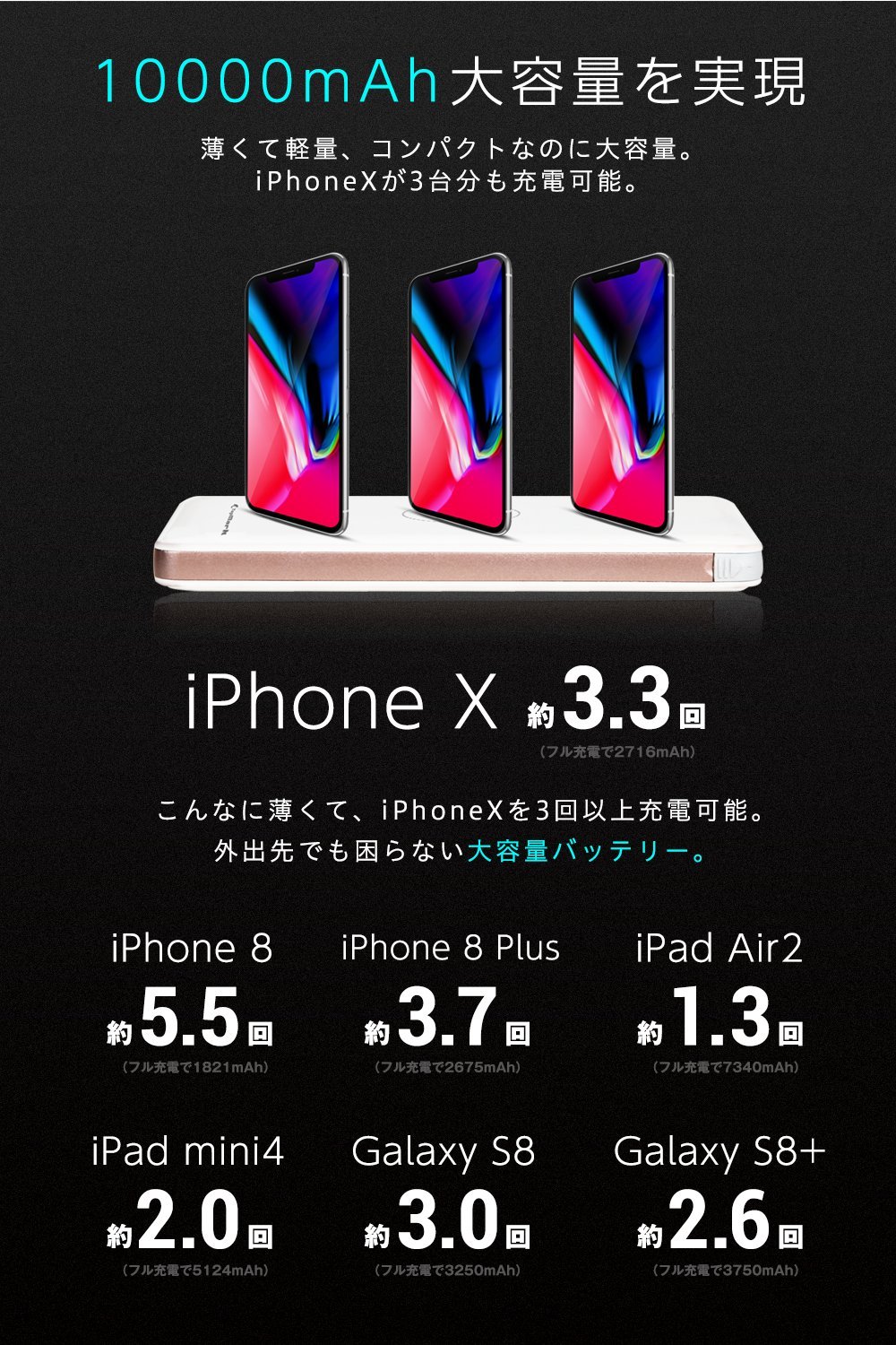 iPhone X 2716 mAh → approximately 3.7 times