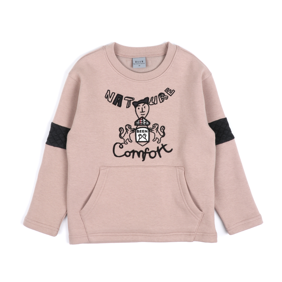 베이지 컬러의 남아 스웻셔츠입니다. 자수 아플리케 처리가 유니크하며, 옆에 지퍼처리되어 열어서 스타일링시 더욱 멋스럽습니다.
