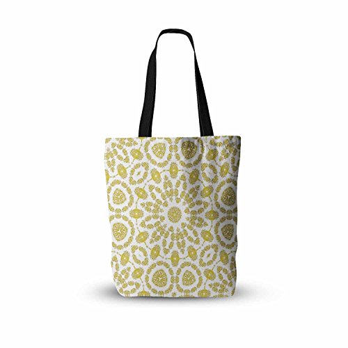 KESS InHouse Alison Coxon "Flaxen Mandala" White Yellow Digital Everything Tote Bag, 13" x 13", Multicolor
