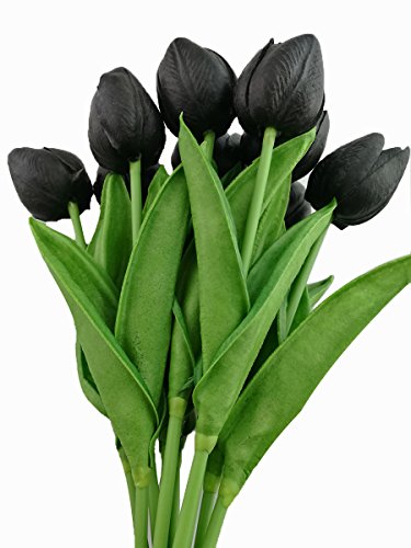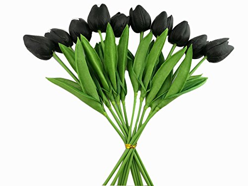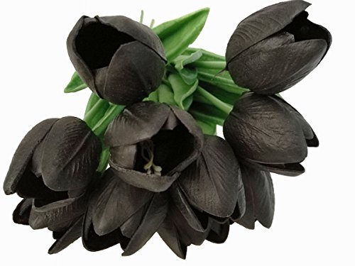 Black PU Latex Real Touch Artificial Mini Cute Tulip Flower Wedding Bridal's Bouquets Wedding Home Table Decoration
