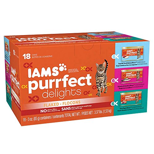 IAMS PURRFECT DELIGHTS Flaked Adult Wet Cat Food, Tuna & Mackerel, 3 oz. (Pack of 24)