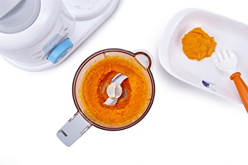 -. Feature : 4 Powerful Functions in One Compact Appliance-the perfect way for busy moms and dads to steam, blend, reheat, and defrost healthy homemade baby food in just 15 minutes! / Innovative One-Handed Controls Plus Quiet Motor-Mom won't even need to put baby down to use this baby food maker! It's quiet and easy to cook and store food with just one hand. / Premium Precision Prep Blade-makes it fast and easy to quickly chop/puree everything from fruit to nuts to veggies with the press of a button. Pulse every 5 seconds to grind. In just 3 rounds, you'll have a delicious puree. / Convenient MINI Size-compact size means it stores conveniently out of the way and it's easy to clean. All components are dishwasher safe and BPA FREE. / Constructed of Safe and Innovative Materials-Premium Materials are BPA, Lead, and Phthalate free and shatterproof so you can create healthy meals for your baby with confidence. Power input restriction supports 120v only.