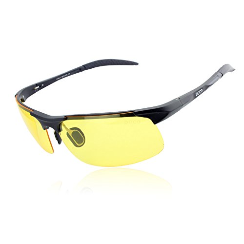 Do you feel annoying when the headlight is too much glare? Do you feel the vision is unclear when you drive at night,dusk or rainy day? Do not worry, DUCO recommend a professional night vision glasses. The lens is UV protection and polarized,the yellow lens can reduce glare, add contrast to your vision and increase visual clarity when you drive at night,dusk or rainy day. Don't hesitate to choose DUCO to keep your driving comfortable and safe.Please kindly note polarized sunglasses is different from polarized night vision glasses. Polarized sunglasses like gray or black color lens would not be compared and used for night driving because it will darken the vision even it can cut the glare,which is dangerous for night driving safety. Night vision glasses will balance the polarized and vision,which can cut the glare from headlight and increase brightness.