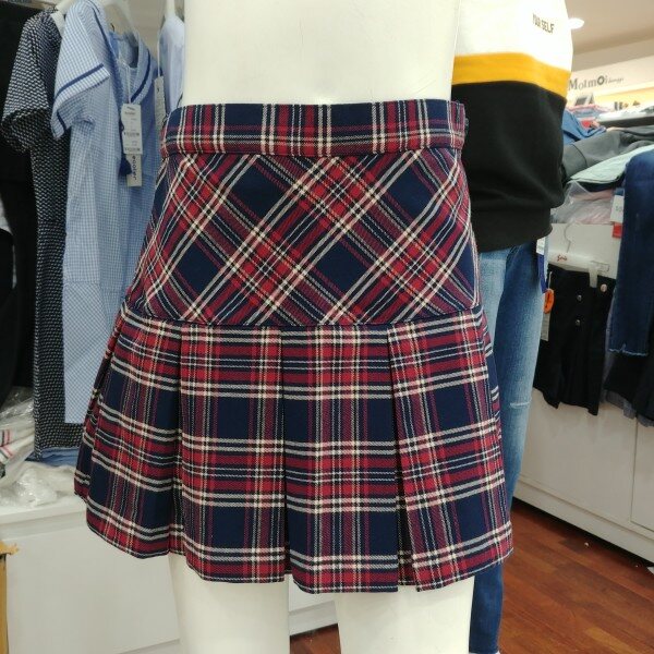 네이비와 레드의 조합이 된 체크 스커트 입니다.발랄한 생동감이 느껴집니다.허리 조절 밴드가 되어 있습니다.속치마도 잇되어 있습니다.