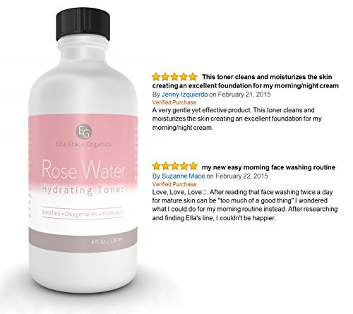 "I have noticed that my skin looks and feel more moisturized." "I love it!! So moisturizing and feels so good on your face." " The bonus is the soft scent of roses..." agua de rosas entonador facial tonico facial cara (o) rostro hamamelis organica suero