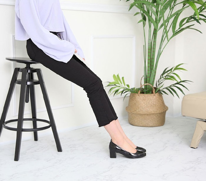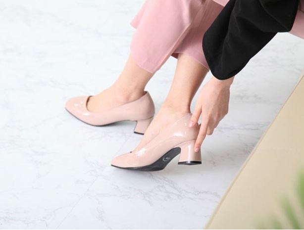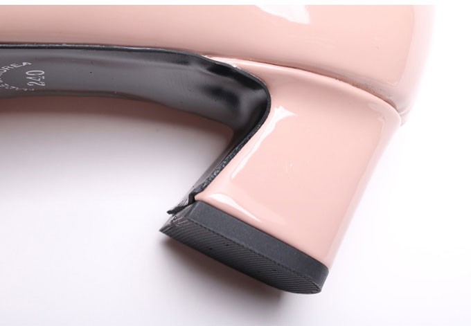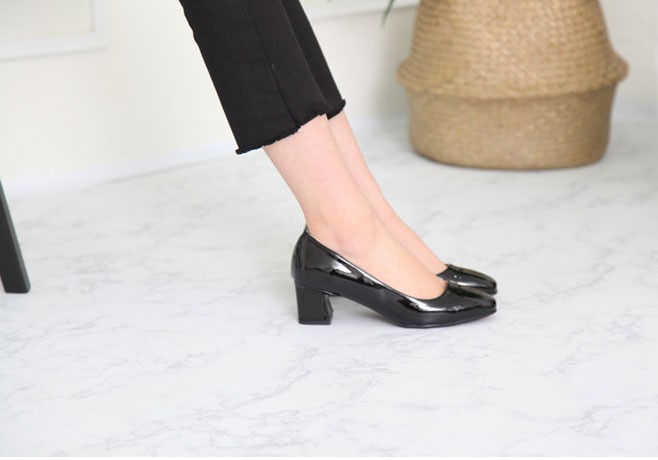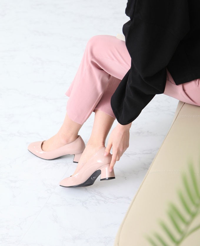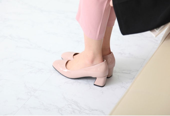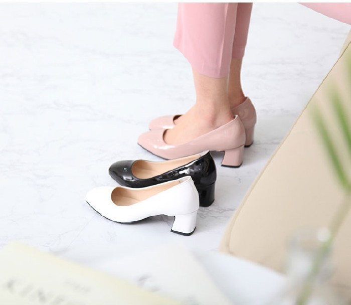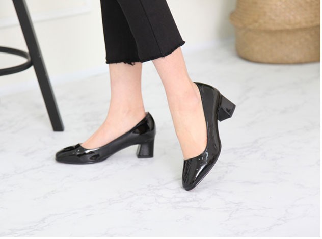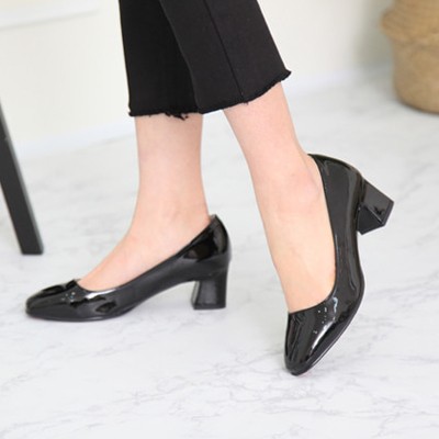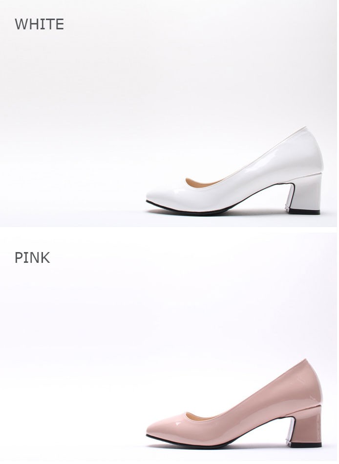 商品名:パンプス レディース チャンキーヒール 太ヒール エナメル調 2018 春 ファッション 靴 婦人靴