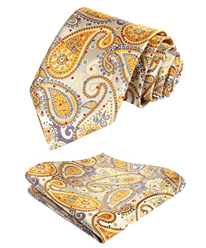 | HISDERN Paisley Wedding Tie Handkerchief Men's Necktie Pocket Square Set |