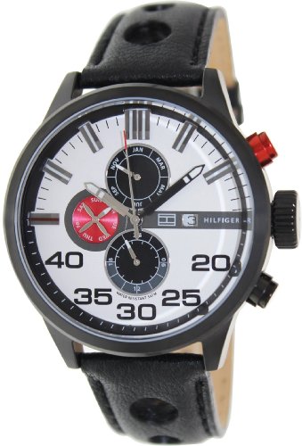 -. Title : Tommy Hilfiger 1790787 white dial black cut-out leather strap men watch NEW