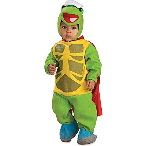 -. Binding : Apparel -. Brand : Rubie's -. Color : Yellow -. Department : baby-boys -. Feature : Romper costume makes it easy for your favorite little one to join the party / Turtle tuck has a removable cape and snap closures at the legs for easy changes / Headpiece also included / Officially licensed wonder pets costume / Rubies' has the costumes and accessories you and your family will enjoy at Halloween and all year long -. Genre : TV/Movie Characters -. IsAdultProduct : 0 -. Label : Rubies Costumes - Apparel -. Manufacturer : Rubies Costumes - Apparel -. Model : 885724 -. PackageQuantity : 1 -. ProductGroup : Apparel -. ProductTypeName : BABY_COSTUME -. Publisher : Rubies Costumes - Apparel -. Studio : Rubies Costumes - Apparel -. Title : Wonder Pets Bunting And Headpiece Costume Turtle Tuck
