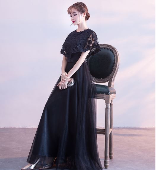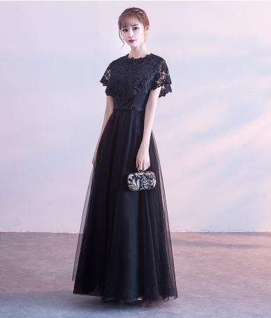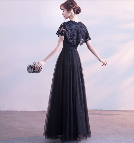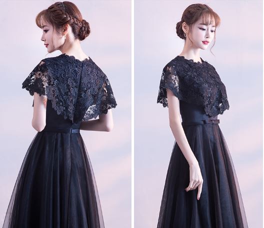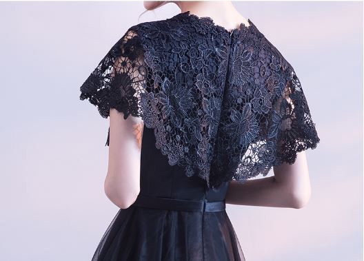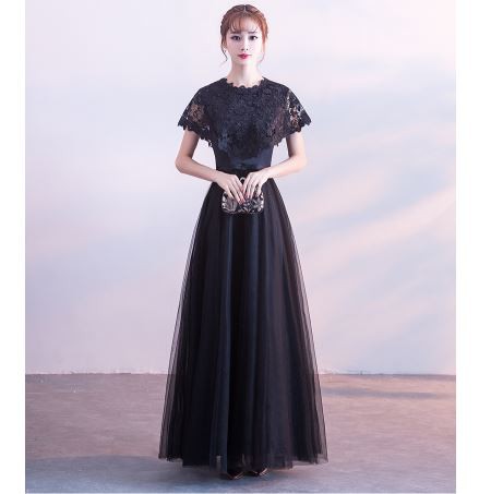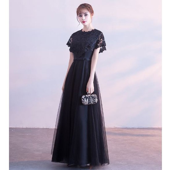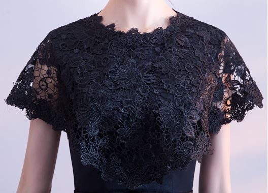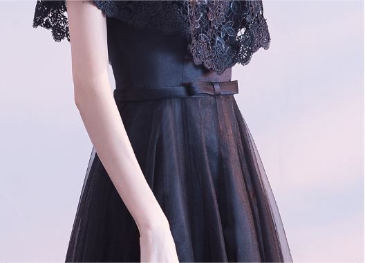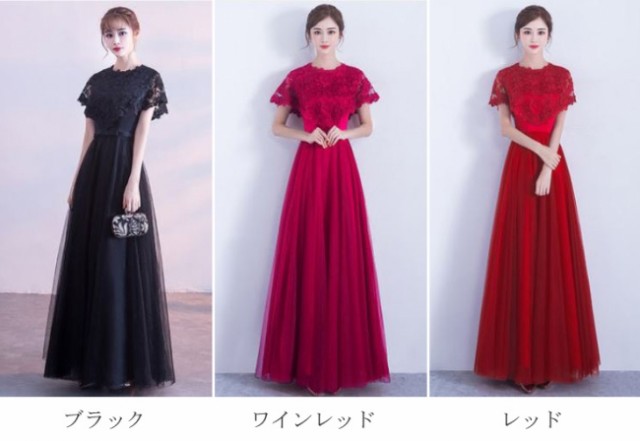 ケープ風レース袖が華やかなドレスです。