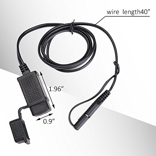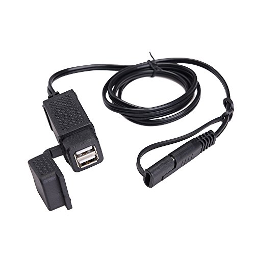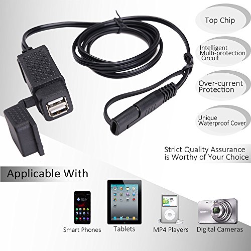 -. Feature : All-round USB Charger- 2.1A SAE to 2 USB adapter, perfectly suitable for charging 2 devices simultaneously (smartphone/iPhone/iPad/MP3/MP4/GPS/Camera/Bluetooth device, etc) / Safety First- 8-28V input voltage, 5V/2.1A output with quick disconnect and over-current protection, CE & ROHS certified, ensuring the charging safety / Super Durable- 18AWGx2C round cable, ABS and high-grade injection molding material, high temperature resistant and corrosion resistant, super durable and not easily deformed / Flexible and Steady Mount- well fitted mounting bracket with 4 install ties and 3M glue, can be 360 degree rotated, allows freely installation of the adapter / Reliable Weatherproof Cover- there's a rubber USB cover for water resistance and dust resistance, effectively enhance its lifespan