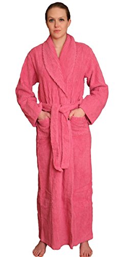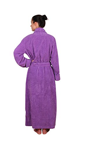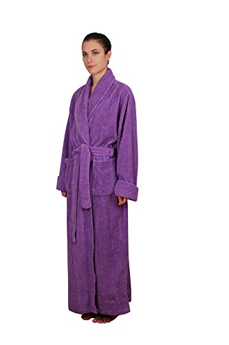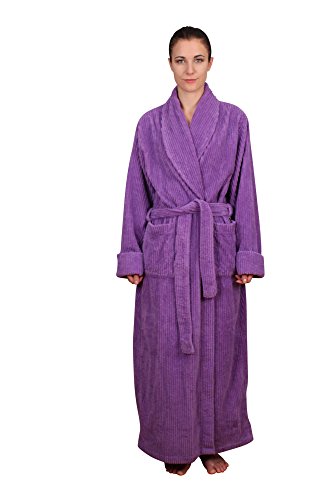 Binding : Apparel Product Description This chenille robe is a plush 100% cotton full length (54-56 inches long) shawl collar robe; the chenille provides a soft touch while the wide and spaced ribbing provide a nice structure with a luscious appeal. The full length combined with a stylish and slightly fitted silhouette makes it a very sleek and plush long robe reaching to the ankles.