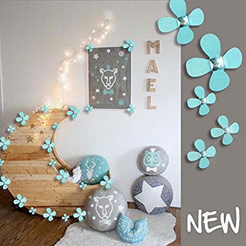 Amaonm®12 Pcs 3d Beautiful Flowers Wall Decals Fashion Wall Decor Removable Decal Floral Wall Stickers Home Decorations Art Decor for Kids Room Bedroom Living Room Bathroom Windows (Turquoise)