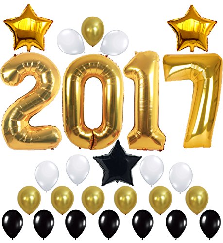 - ADD A PERFECT TOUCH to your decorations with our Gold, Black & White Ballons with 2 Gold & 1 Black Star which Compliments 2017 Gold Balloons and Gives a complete look to your party decoration, events, graduation party or even 70th Birthday, 17th Birthday, 27th Birthday 20th Birthday or even Class of 2017 Theme as Graduation Balloons & Graduation Decorations