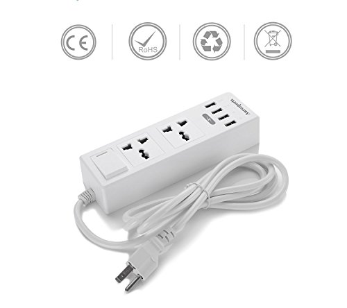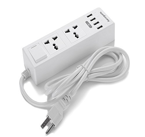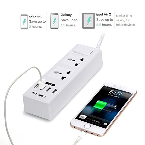 Aurosports Surge Protector, Power Strip 2 Outlets with 4 USB Charging Ports , Worldwide Voltage Power Socket With 4 USB Outputs for Home/Office Including 5.9 Feet(1.5 Meters) Cord