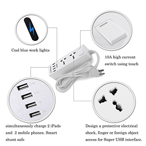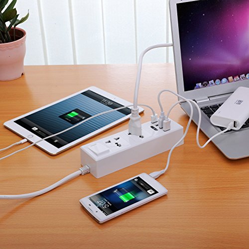 Surge Protector Has 4 Super USB Interfaces, You Can Charge Two Ipad, 2 Mobile Phones Simultaneously, Smart Shunt ,Safe And Efficient