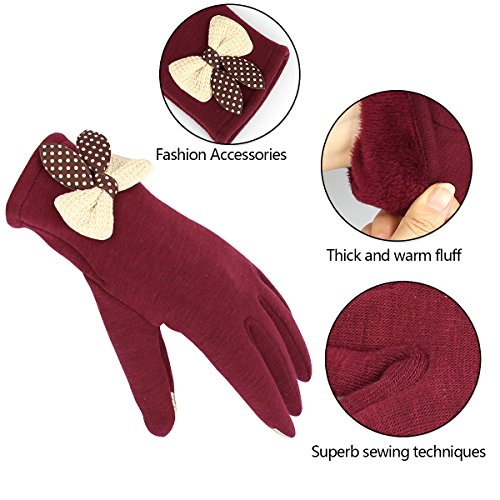 - If you are bothered to take off your gloves when you need to play with your mobile phone or ipad in the winter, our texting gloves can help you to free from trouble and play with your phone with abandon. - Winter is fascinating but cold, you want to have a hiking , biking, traveling and other outside activities, just wear it and get out directly ,as it can keep your hands really warm and bring you a enjoyable outside time. - The touchscreen gloves are made of polar fleece, which keeps your hands warm and improve the cold hardiness of your hands, the cute bowknot on the wrist of gloves bring you a fashionable vesion at the same time. - Winter is coming soon, Praper the gloves for yourself or your dear friends, whatever you will gain a nice result, gain a warm and convenient winter or your friends'sincere thanks.