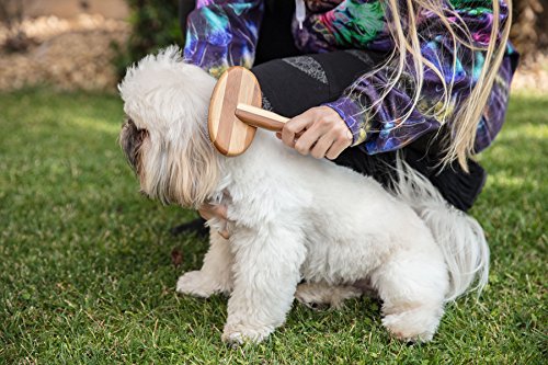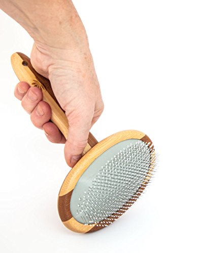 PROFESSIONAL PET GROOOMING: Wood Wire Slicker brush for long or short haired pets gently removes loose hair, eliminates tangles, knots, dander and trapped dirt