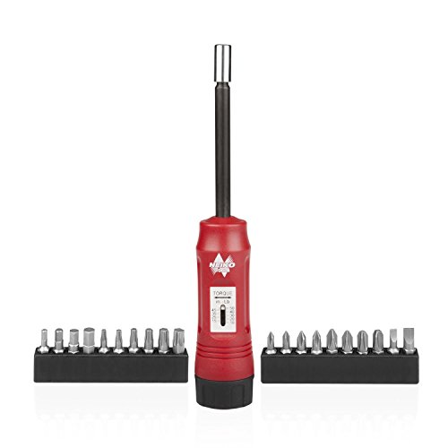 Neiko 10573B Torque Screwdriver Set, 1/4-Inch Drive, Long Shank, 10 to 50 Inch-Pound Range, 20 Bits Included