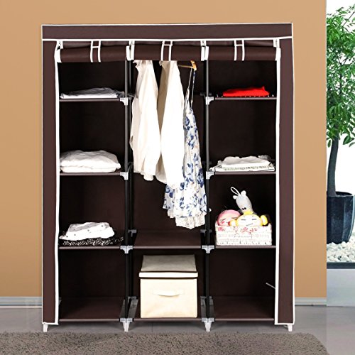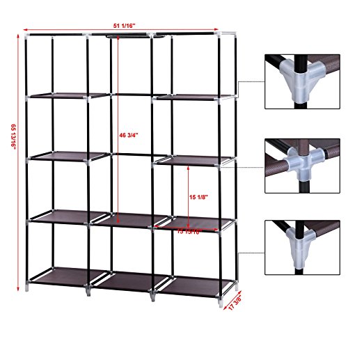 SONGMICS 51" Portable Closet Wardrobe Clothes Storage Rack Organizer 10 Shelves Dark Brown URYG93K