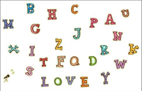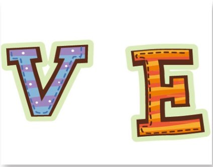 English initials of large stickers: 1.38 Iinch clearly visible to the eye size for each word.