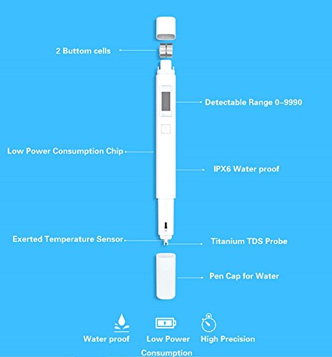 Feature : AUTOMATIC CALIBRATION ensures accurate readings of your homes water supply for the life of your Happy Hydro Digital TDS Meter. / MEASURES CONTAMINANTS IN WATER with just 1 click. Know the Total Dissolved Solids present in water, to 9990ppm, with the easy-to-read LCD display on this 6" pen-style TDS meter. Accurate to /- 2%. / AUTO SHUT-OFF FUNCTION preserves the life of 2 LR44 batteries. Our TDS Meter self-calibrates to ensure accuracy of readings. Storage cap protects probe when not in use. / WATERPROOF DESIGN makes the Happy Hydro TDS Pen great for hydroponics, aquaponics, salt water fish tanks and anywhere else that you need to monitor for the presence of metals or plant nutrients in water. Rated IPX6 waterproof. Effective between 32 F and 176 F degrees. / PORTABLE the mini TDS meter is very convenient to take and use.