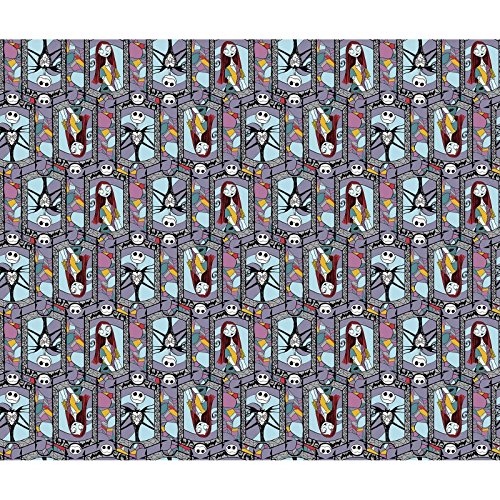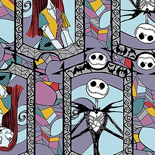 Nightmare Before Christmas Cotton Fabric - Sally and Jack Stained Glass by the yard