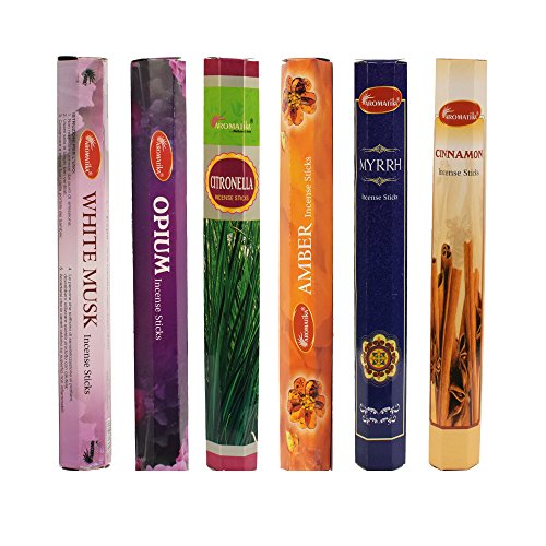 Aromatika Best Seller Hexa Combo Pack 'D' (6 Boxes X 20 Sticks=120 Sticks) incense sticks White Musk,Opium,Citronella,Amber,myrrh,Cinnamon