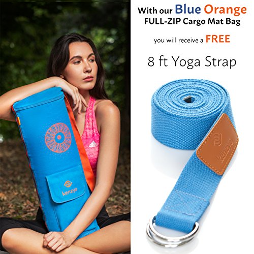 Yoga Mat Bag by Kenzyo: Full-Zip Cargo Mat Carrier | Adjustable Strap, 2 Storage Pockets, 4 Air-Vents | Bonus 8ft strap & E-book