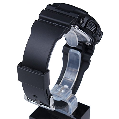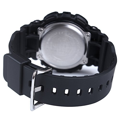 The timepiece's gunmetal, analog-digital dial and black resin strap create a sleek look, while the G-Shock's tough build allows it to withstand your various outdoor adventures! Not only is the watch shock and magnetic resistant, but it also has stopwatch and countdown functions, as well as world time options and an LED light.49mm caseGunmetal-tone, analog-digital dial with stick and dot indices, two luminous hands, one subdial, two digital displays and G-Shock logoShock resistantMagnetic