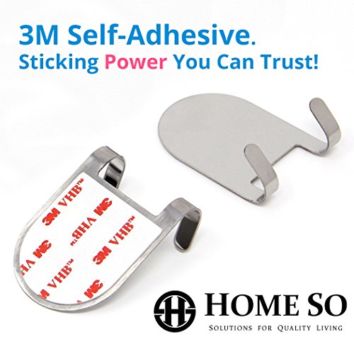 Super Easy to Install Powerful 3M Self Adhesive The adhesive side of HOME SO's all purpose hooks ensures high adhesion with its 3M power strip. Can be used on a wide variety of surfaces including painted textured wallboard, dry wall, ceramic and porcelain tile, granite, glass, metal, cultured marble, plastic and wood or gypsum. Once applied to the wall or other surfaces, it will be difficult to remove and might leave residue. So please carefully choose your location before applying, especially for gypsum or wallpaper surfaces.