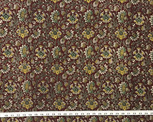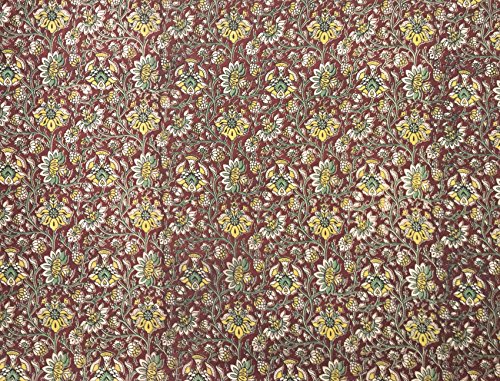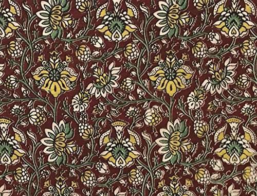 Style : Traditional Indian Kalamkari Block Printed Fabric - Floral print on Burgundy background. Please allow for some imperfections in terms of printing and dyeing as its a hand dyed and hand printed fabric and colors are all fruits and vegetable based