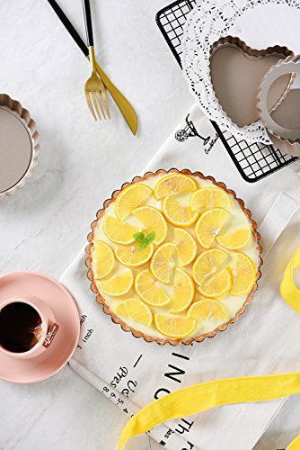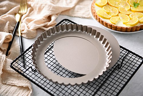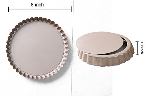 Studio : Bakerdream Publisher : Bakerdream Product Description About Bakerdream Removable Bottom Tart Pan: 1. With removable bottom for easier bake, take out and clean. 2. With fine designed fluted edge, create a strong crust holding and containing various ingredients of a quiche or a fruit tart. 3. Perfectly formed 8 Inch Pie Pan, noticeably texture than most comparable brands, assuring the round pan heat evenly. 4. Easy clean-up and dishwasher safe. 5. Bake delicious pizza, quiche, pies, and tarts etc. Friendly Tips: 1. The size is measured by hands, please allow minor error of measurement. 2. Photo color might be a little different from the actual product due to color display of different monitors. 3. Do not use knives or sharp utensils directly on the round pan and avoid direct contact with fire and burners.