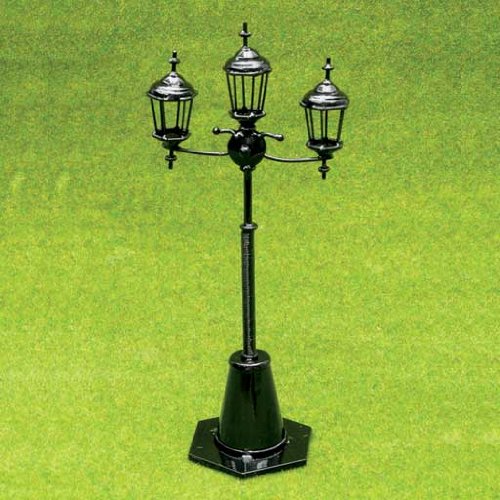 This non working three light street lamp would be ideal on a patio or used to light the entryway to your dollhouse. It would also be perfect in a street scene or in front of a store or shop. Metal.3 1/8"W x 7 3/8"H x 2"D (base)