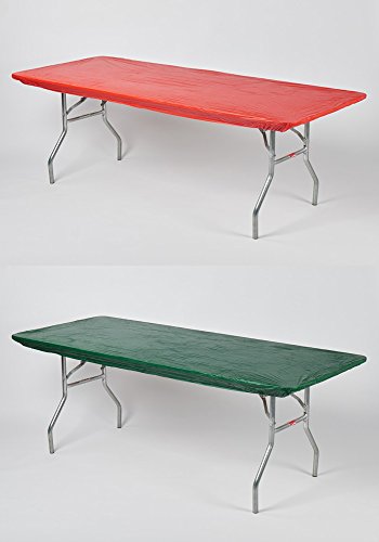 Kwik-Covers Rectangular Fitted Plastic Table Covers, 6' x 30" (6 Feet), Red, Green