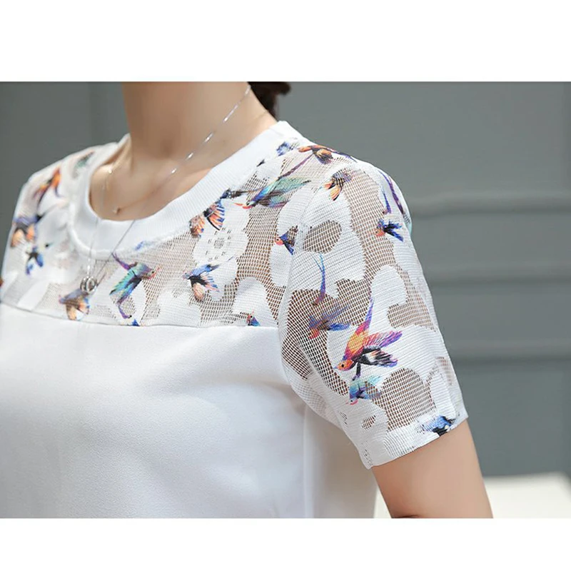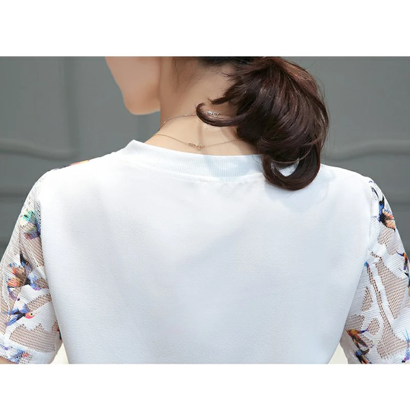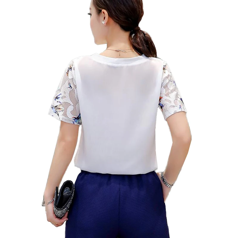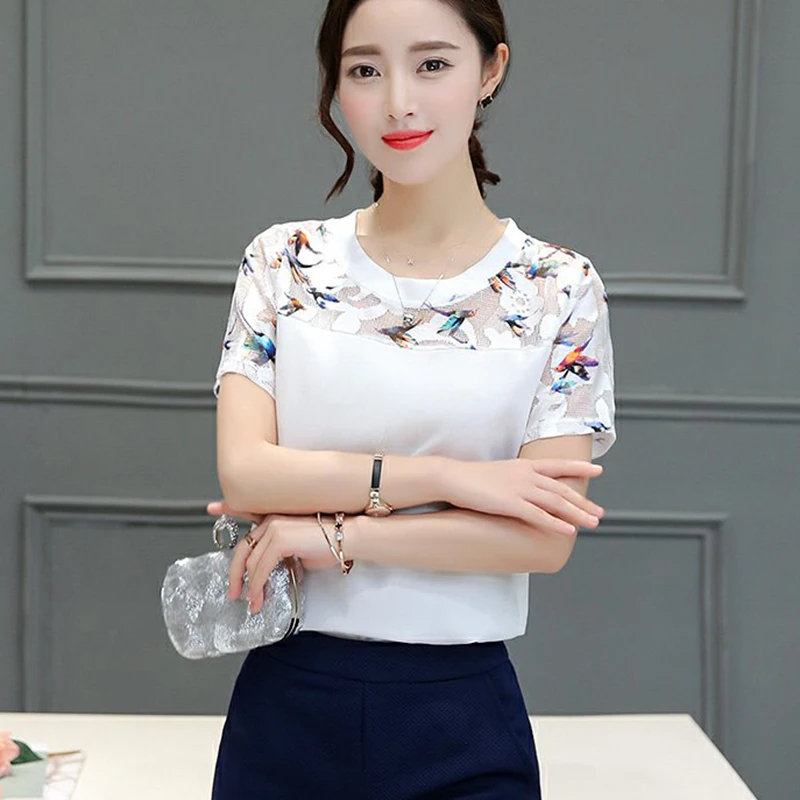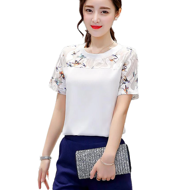 style : fashion o-neck short sleeve lace blouse women
