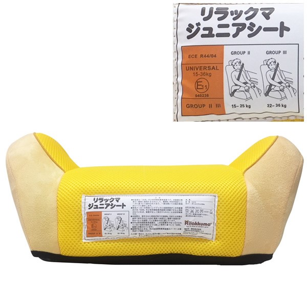 座面はメッシュ素材なので通気性が良く、長時間のドライブでも快適ですかわいいリラックマのシートだと車嫌いのお子様でも喜んで乗ってくれるかも♪サイズ約W44×D39.5×H20cm個装サイズ:44×40×20cm重量約1000g個装重量:1000g素材・材質本体:HDPEカバー:ポリエステル100%仕様ECE(欧州安全基準)R44/04安全基準適合品(汎用型グループII~III)【適応条件】・体重:15kg以上~36kg未満・身長(目安):100~138cm・年齢(目安):3歳~10歳頃・腰が安定し、1人座りができること付属品取扱説明書兼保証書(保証期間:1年間)製造国中国 かわいいリラックマと一緒にドライブ♪ ? 座面はメッシュ素材なので通気性が良く、長時間のドライブでも快適ですかわいいリラックマのシートだと車嫌いのお子様でも喜んで乗ってくれるかも♪ ?