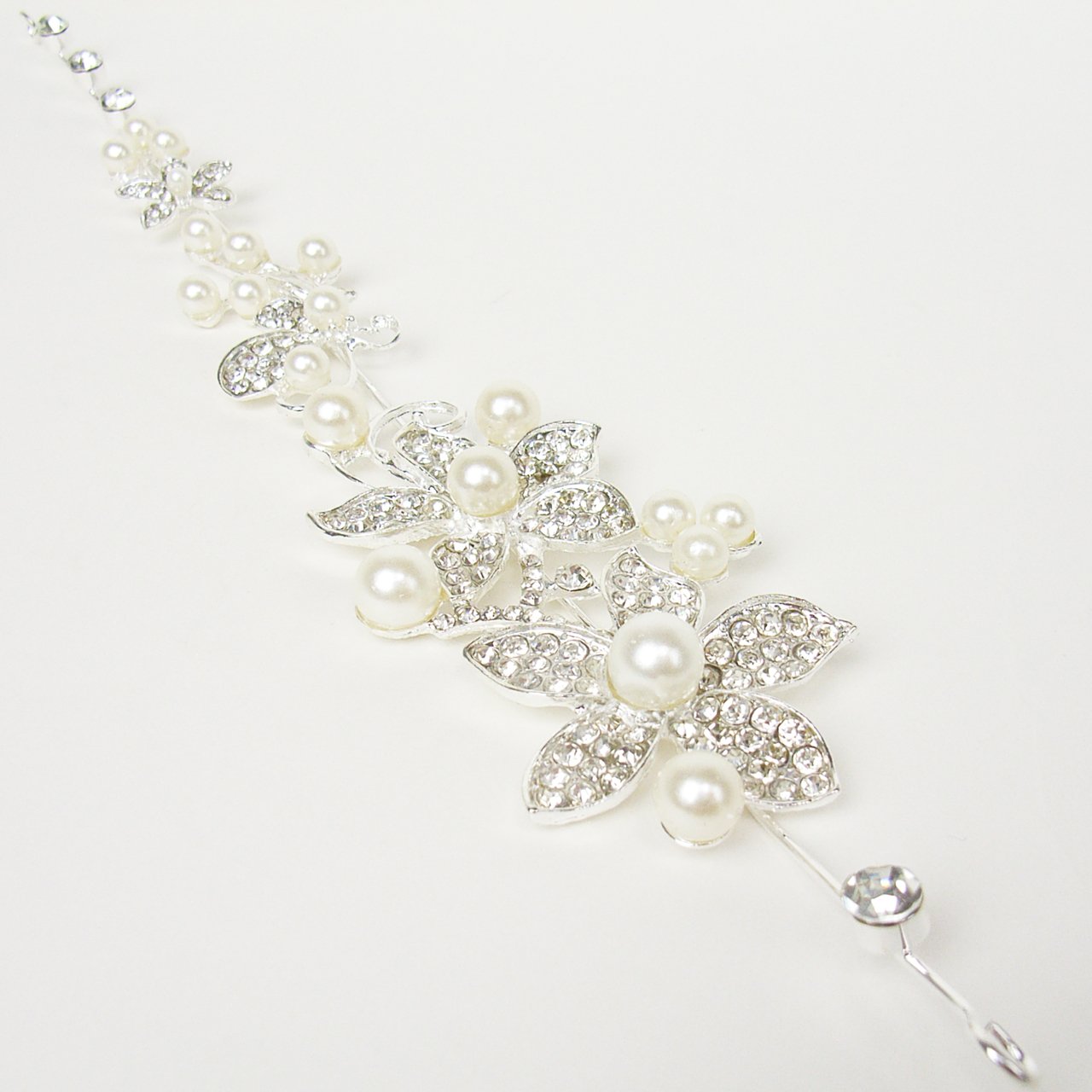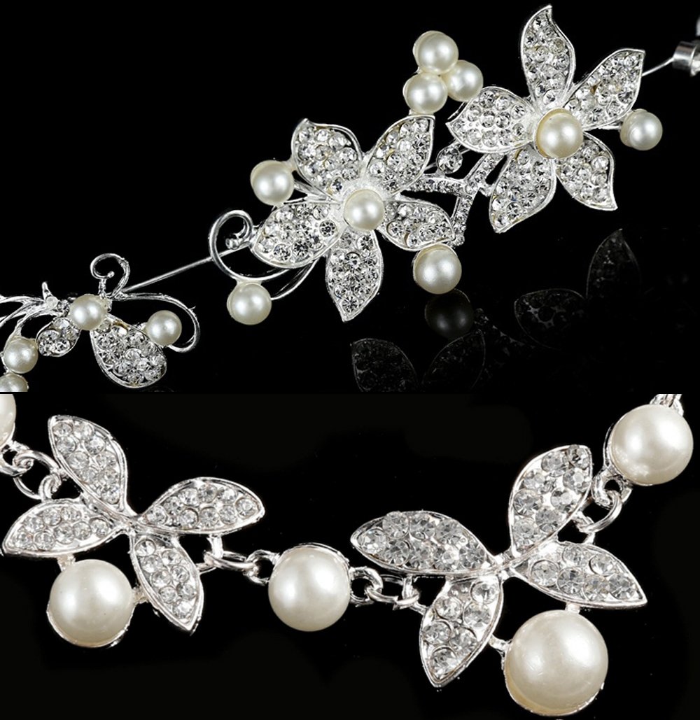 Flower design tiara with pearl and rhinestone can be easily fixed by hand with moderate curve and angle adjustment using hairpin.