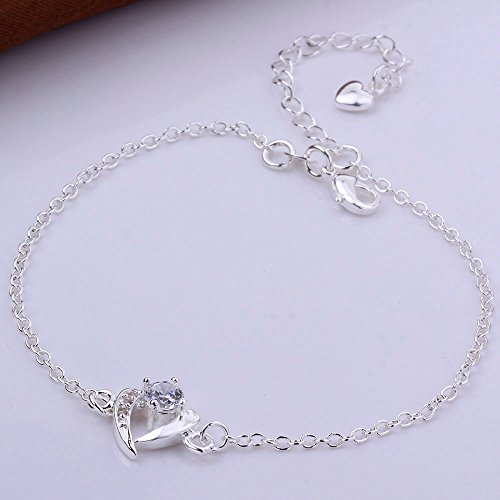 ♥Simple but Elegant♥ Slim Silver Chain with a Unique Lovely Heart ornament and Sparkling Zircon Charm. Simple yet Elegant; Stylish and Attractive. Wear yours and let your ankle no longer be "Lonely"!
