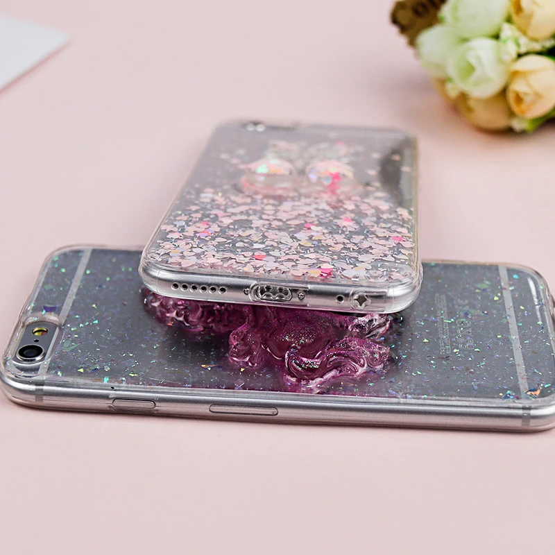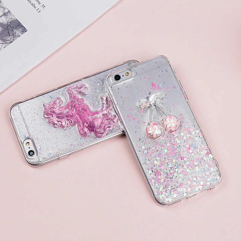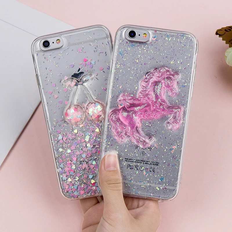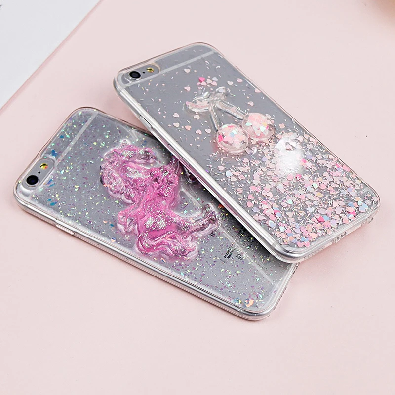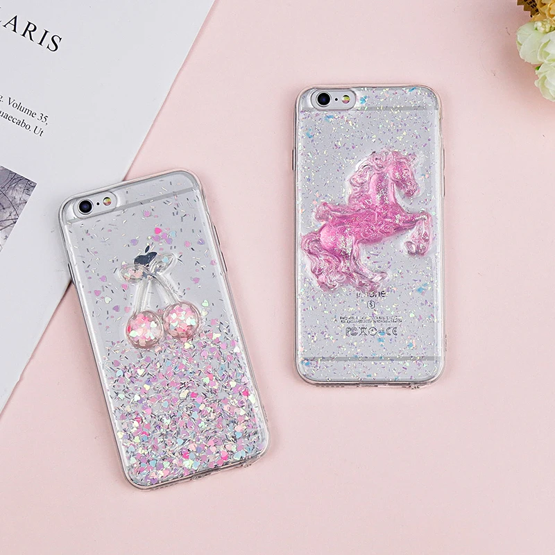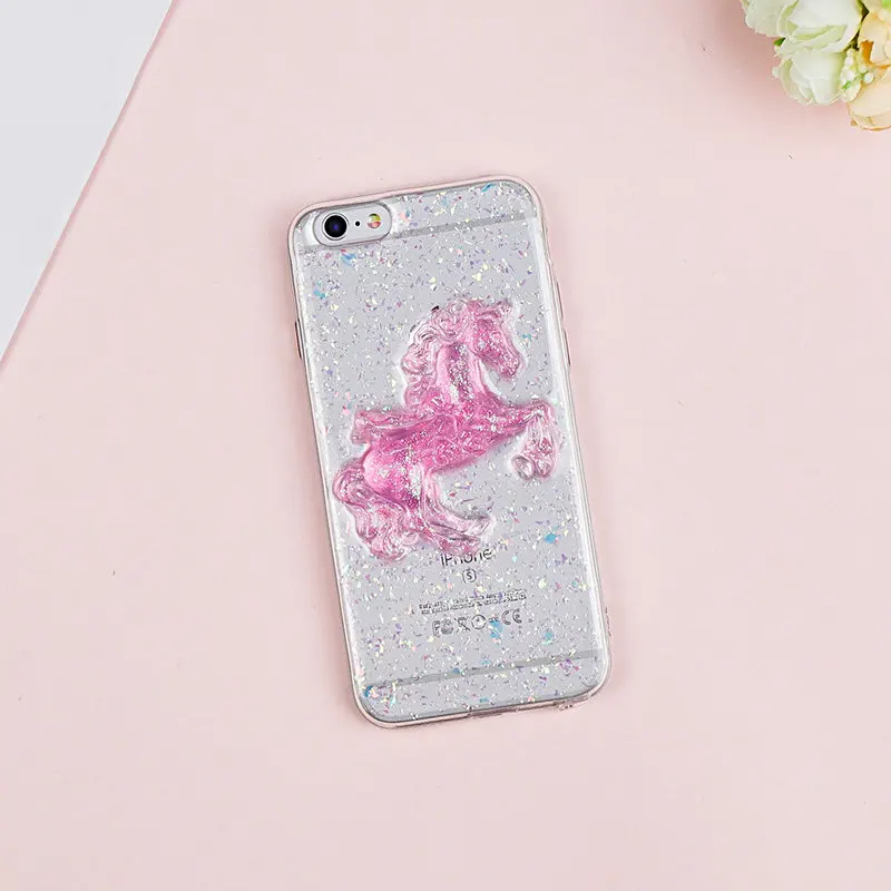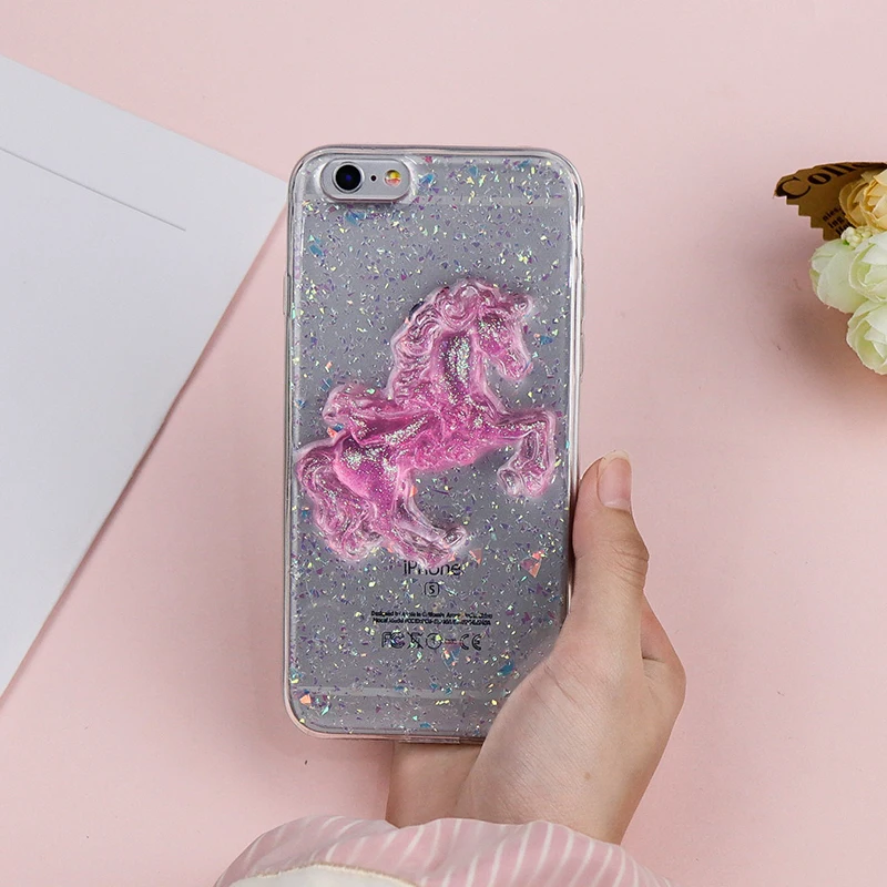 Features:Cute Pink Horse Soft TPU Bling Shining Glitter Powder Bell Back Cover