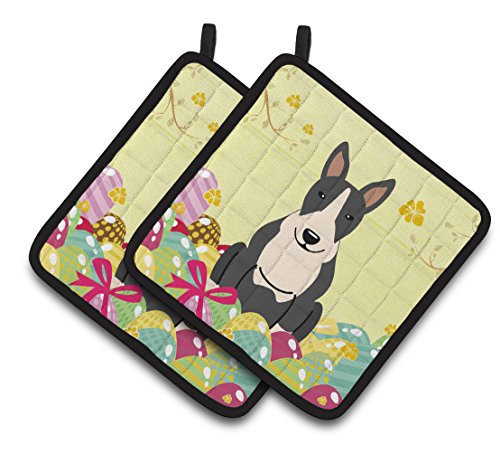 Caroline's Treasures Easter Bull Terrier black Pair of Pot Holders, 7.5HX7.5W, Multicolor