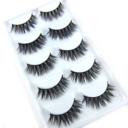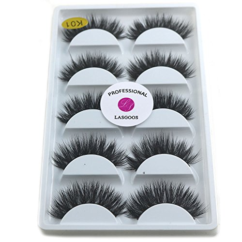 3D Real Mink False Eyelashes LASGOOS 100% Siberian Mink Fur Luxurious Wispy Natural Cross Thick Long Wedding Fake Eye Lashes 5 Pairs/Box MY-0145