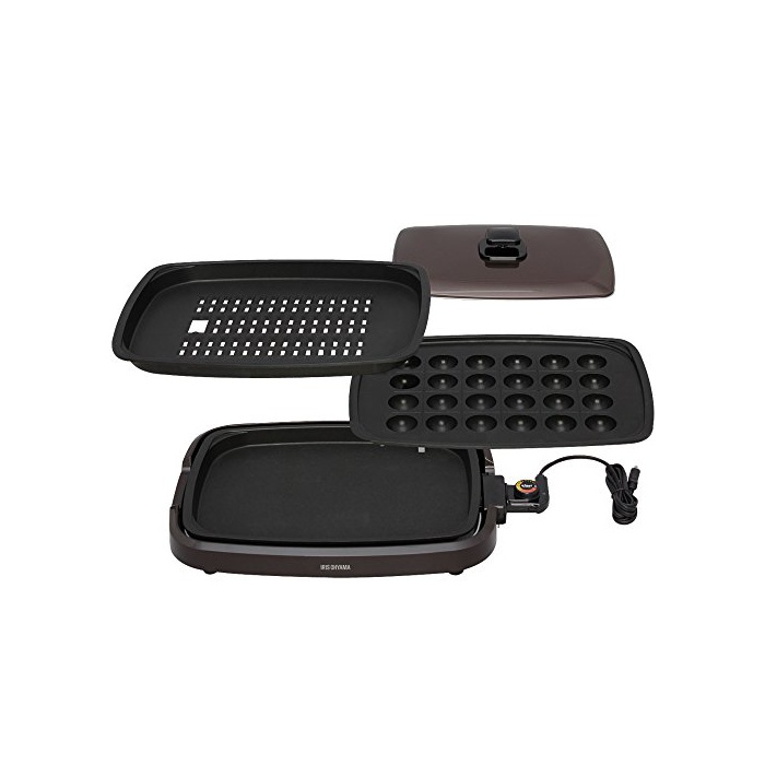 원본상품명: アイリスオ?ヤマ ホットプレ?ト 平面 たこ?き ?肉 プレ?ト 3枚 蓋付き 減煙 ブラウン APA-135-T