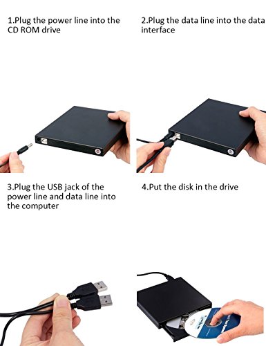 【Durable Detachable USB cables】: This cd dvd player comes with 2 detachable USB cables,more durable than the tranditional external drive cable.1 data transmission cable and 1 power cable.If your computer can't supply enough power with 1 data transmission cable,please connect the drive to computer with both 2 cables.